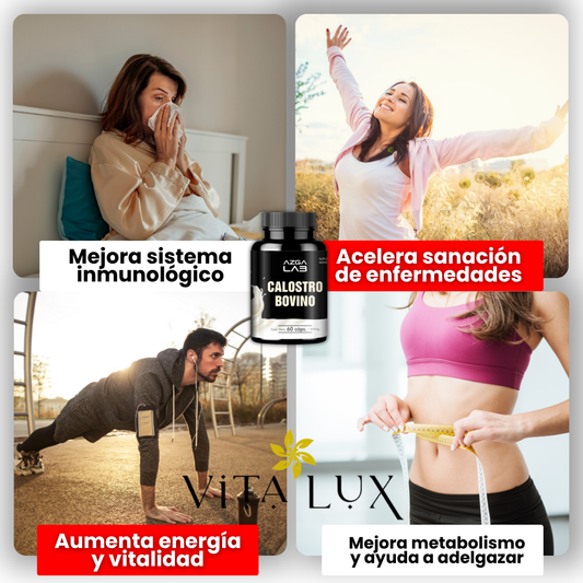 Calostro Bovino VitaluX™ Premium 60 Cápsulas | Defensas Fuertes, Energía y Metabolismo Saludable 🌱