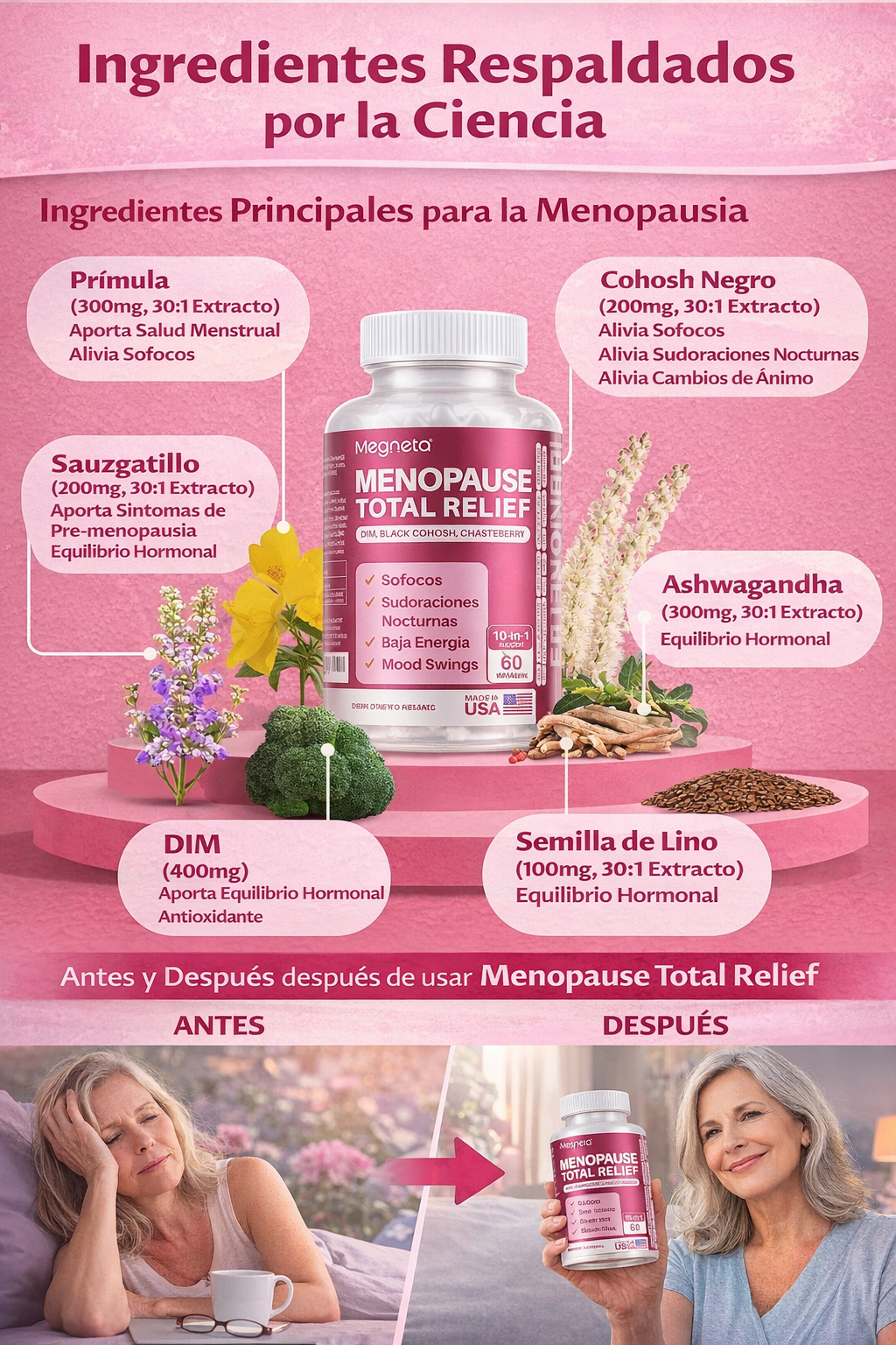 ✨ Ayuda a disminuir la sensación de sofocos y sudoraciones nocturnas